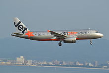 A Jetstar Asia Airways A320 at Kansai International Airport in Osaka