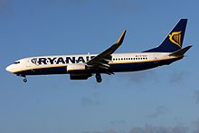 A Ryanair Boeing 737-800. Ryanair is the largest low-cost airline in Europe and second largest in the world.