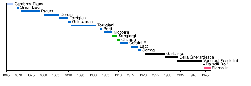 | 11 | Filippo Corsini | 1910 | 1915 | Liberal | |||