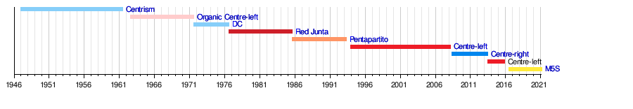 | 20 | Glauco Della Porta | 17 July 1962 | 12 March 1964 | DC | Organic Centre-left (DC • PSI • PSDI • PRI) | 1962 |