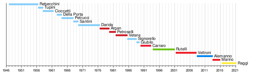 | Mayor of Rome | Took office | Left office | Party | Coalition | Election | ||||