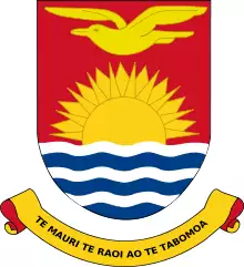 An example of a motto, Te mauri, te raoi ao te tabomoa (Health, peace and prosperity) on the Coat of arms of Kiribati
