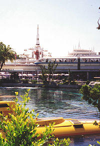 - PeopleMover (1967–1995): A scenic, slow-moving ride high-above Tomorrowland that was intended to demonstrate how people could be shuttled around a central urban area without rushing to board individual trains or drive individual cars. It consisted of many dozens of small open-air cars seating up to eight riders, all running continuously on a track above and through the various attractions in Tomorrowland. After the ride was closed, the track sat vacant for two-and-a-half years until the opening of the ill-fated Rocket Rods. The Walt Disney World version is still active in the Magic Kingdom under the name of Tomorrowland Transit Authority.