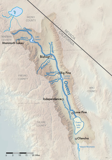 Rivers draining into saline and endorheic Mono Lake in eastern California, from north and proceeding counterclockwise: