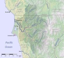 Rivers and streams between the Oregon border and Humboldt Bay that empty into the Pacific Ocean (arranged north to south; tributaries with those entering nearest the sea first). Bold indicates rivers with more detailed lists in following sections.
