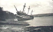 The Mercantile Marine Service Association training ship, formerly a Rodney class 90 gun Ship-of-the-Line, ran aground in the Menai Strait and was subsequently declared a total loss. Her wreck was destroyed by a fire in 1956.