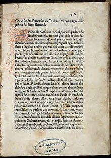 - ^ a b Robinson, Paschal. "Fioretti di San Francesco d'Assisi". The Catholic Encyclopedia Vol. 6. New York: Robert Appleton Company, 1909. 15 June 2016