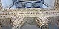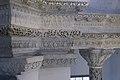 Inside the edifice there is a beautiful two-storey colonnade which runs along the north, west and south sides, and bears an elegant inscription in twelve Greek hexameters dedicated to the Emperor Justinian, his wife, Theodora, and Saint Sergius, the patron-saint of the soldiers of the Roman army. For some unknown reason, Saint Bacchus is not mentioned. The columns are alternately of verd antique and red Synnadic marble; the lower storey has 16, while the upper has 18. Many of the column capitals still bear the monograms of Justinian and Theodora.[12]