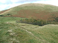 Little Mell Fell is a small U-shaped area of high ground, about 1 square mile (2.6 km2) in area,[1] north of Ullswater and east of Great Mell Fell. Its summit is a symmetrical rounded grassy dome in the south-east corner of the fell which reaches a height of 505 m, 32 m lower than Great Mell Fell. Two short grassy spurs extend from this dome: one to the north and one to the west. The western spur then turns northwards so that a deep valley is enclosed between the two spurs, drained by the upper reaches of Thackthwaite Gill.