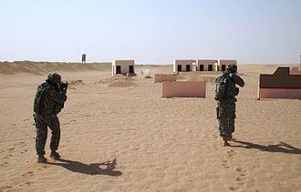 The British SAS and Royal Marines are also known to use live rounds, for the former during the jungle phase of training, and the latter using live rounds in their final exercise. The SAS also use live-fire in regular close quarter combat training.