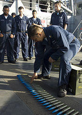Naval live-fire exercises may use anti-ship missiles and torpedoes, although tests involving air-to-air and air-to-surface missile, guns and bombs are not uncommon. Navies conduct live-fire exercises to test elements of an integrated defense system, such as the US Aegis; namely, its ability to track and destroy enemy anti-ship missiles. Tests can also include an integrated defense system's compatibility to fire new missiles or newer versions of the same missile. Live-fire tests are also conducted with a CIWS system, which is designed as the last line of defense for a ship. Surface ships also frequently test-fire the various guns kept and maintained aboard the vessel; these can range from sidearms and rifles up to the 16" guns of the mothballed US Iowa-class battleships. This is done to maintain the skill and knowledge needed to operate the weapon. In the case of aircraft carriers, the pilots assigned to the carrier may conduct air-to-air and air-to-surface missile exercises similar to those of the air force; additionally, these pilots may also conduct live-fire exercises against derelict ships. Recent aircraft carriers have incorporated missile-launching systems, and have taken part in live-fire exercises involving missiles.