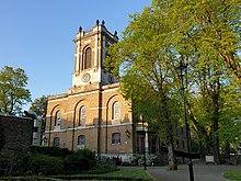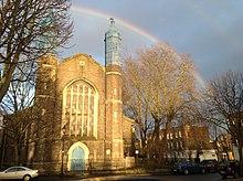 St Mary Magdalene Church is situated in gardens between Liverpool Road and Holloway Road. It was built in 1814 to a design by William Wickings as a chapel of ease to the parish church of St. Mary's farther south on Upper Street. The site chosen had space for both the church and a churchyard and burial ground. However, its final cost, £32,636, was so high that a committee of investigation was appointed, which found that much of it was wasted thanks to an absence of a specific contract. Its design drew little praise.[45] It became a parish church in its own right in 1894, and is now part of the parish of Hope Church Islington.