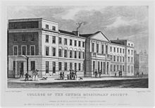 Between nos. 220 and 222 Liverpool Road, a short road leads into College Cross. Here the Church Missionary College stood from 1825 to 1915 on the site of the present Sutton Dwellings. The college was built by the Church Missionary Society on the site of a large 18th century botanic garden.[37][38]