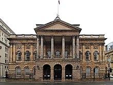 Liverpool Town Hall stands in High Street at its junction with Dale Street, Castle Street, and Water Street in Liverpool, Merseyside, England. It is recorded in the National Heritage List for England as a designated Grade I listed building, and described in the list as "one of the finest surviving 18th-century town halls".[1] The authors of the Buildings of England series refer to its "magnificent scale", and consider it to be "probably the grandest ...suite of civic rooms in the country", and "an outstanding and complete example of late Georgian decoration".[2]