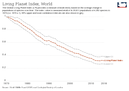 The Living Planet Index (LPI) is an indicator of the state of global biological diversity, based on trends in vertebrate populations of species from around the world. The Zoological Society of London (ZSL) manages the index in cooperation with the World Wide Fund for Nature (WWF) a.k.a. the World Wildlife Federation.