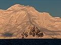 On advancing from the northward toward Livingston's or the Main Island, the land will appear in mountains of a vast height, and covered entirely with snow; the base of them terminating in perpendicular ice cliffs. The whole has an awfully grand, though terrific and desolate, appearance; the snowy mountains showing themselves, one over another, far above the clouds, and exciting in the mind a devotional reverence on the wonders of the Almighty: and even if surrounded on all sides with rocks and breakers, the mind is forced into pious contemplation on the grandeur of the scene.[19]