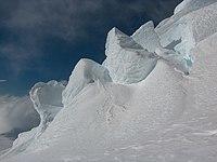 Ice cliffs, often withdrawing during recent decades to uncover new coves, beaches, spits, points and minor islands, form most of the coastline. Except for the ice-free Byers Peninsula and some isolated patches, the land surface is covered by an ice cap with ice domes and plateaus in the central and western areas, and a number of valley glaciers formed by the more mountainous relief of eastern Livingston. Certain areas of the ice cap, especially near glacier termini or over steeper slopes, are densely crevassed and almost inaccessible without specialized equipment. Elsewhere, the surface is smooth, hard and comfortable for walking, skiing or snowmobiling. However, the danger of falling into some hidden crevasse masked by a snow bridge is ever-present, including in frequently visited and supposedly well-known localities. Protracted periods of warmer weather tend to make the snow bridges more unstable and hazardous.[3]