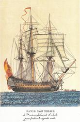 A few months later Smith revisited the South Shetlands, landed on King George Island on 16 October 1819 and claimed possession for Britain. In the meantime, a Spanish man-of-war had been damaged by severe weather in the Drake Passage and sank off the north coast of Livingston on 4 September 1819. The 74-gun ship San Telmo commanded by Captain Joaquín Toledo was the flagship of a Spanish naval squadron en route to Callao to fight the independence movement in Spanish America.[30] The officers, soldiers and sailors on board the ship, including the squadron's Peruvian-born leader Brigadier Rosendo Porlier, are the first recorded people to die in Antarctica. While no one survived, some of her spars and her anchor-stock were found subsequently by sealers on Half Moon Beach at Cape Shirreff.[31][28]