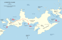 Livingston Island (Russian name Smolensk,[1][2] 62°36′S 60°30′W / 62.600°S 60.500°W) is an Antarctic island in the Southern Ocean, part of the South Shetlands Archipelago. It was the first land discovered south of 60° south latitude in 1819, a historic event that marked the end of a centuries-long pursuit of the mythical Terra Australis Incognita and the beginning of the exploration and utilization of real Antarctica. The name Livingston, although of unknown derivation, has been well established in international usage since the early 1820s.