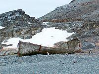As the seals were killed onshore the hunters spent protracted periods of time there, seeking refuge from the elements in purpose-built stone huts, tent bivouacs or natural caves. Livingston Island became the most populous place in Antarctica for a time, its dwellers exceeding 200 in number during the 1820–23 South Shetlands sealing rush.[33][3] The principal sealer ‘settlements’ on the island were situated on Byers Peninsula, as well as at Cape Shirreff and Elephant Point.[34] Argentine archaeological research has identified 26 human-built shelter structures on Byers Peninsula alone.[35] There were some women among the early inhabitants of the island, as evidenced by a 1985 discovery of the grave of a 21-year-old woman of mixed European and Native American descent at Yamana Beach on Cape Shirreff, dated to the early 19th century.[36] Remains of huts and sealer artefacts are still found on Livingston, which possesses the second greatest concentration of historical sites in Antarctica (after South Georgia). The memory of that epoch survives, other than in archaeological finds, also in a dozen preserved ship logs and as many memoirs, such as the candid story published in 1844 by one Thomas Smith who sailed to Livingston in the sealer Hetty under Captain Ralph Bond during the 1820/21 season.[37]