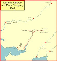 The Llanelly Railway and Dock Company was an early Welsh railway system. It opened its first short line and a wet dock at Llanelly in 1834, and soon went on to build a longer line from Llanelly to serve pits in the Amman Valley, and then on to Llandilo, reached in 1857. The Llanelly company leased and worked the Vale of Towy Railway on to Llandovery, from 1858.