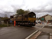 The SWR had no wish to acquire a narrow gauge (as 4 ft 8 1&fras1;2 in or 1,435 mm standard gauge was described at the time) mineral branch line, and for some time considered a viaduct to avoid the flat crossing of the Llanelly lines, which seemed to be the point at issue. The issue continued fruitlessly until the SWR opened its main line in October 1852; a flat crossing was provided and the Llanelly Company insisted on controlling the crossing. An exchange goods shed was built at the SWR station, served by a spur from the Llanelly Railway, opened in June 1853.[1][3]