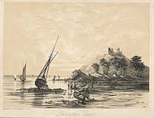 The castle sits on a much older Iron Age promontory fort, proving Llansteffan has been inhabited for several millennia.[1] The hill where the castle stands commands the River Tywi estuary. The hill would have been stripped of trees so that foot soldiers were vulnerable to attack by archers. The original earthworks can still be seen and were used as part of the modern castle's defence system—the castle proper rests within the earthwork rings.