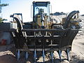 A Caterpillar 930G fitted with a loader rake on a residential construction site in South Florida.