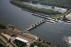 Lock and Dam 5A, Upper Mississippi River. View is upriver to the northwest. | |