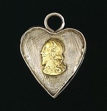 A locket is a pendant that opens to reveal a space used for storing a photograph or other small item such as a lock of hair. Lockets are usually given to loved ones on holidays such as Valentine's Day and occasions such as christenings, weddings and, most noticeably during the Victorian Age, funerals. Historically, they often opened to reveal a portrait miniature.