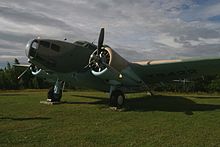 The Lockheed Hudson was an American-built light bomber and coastal reconnaissance aircraft built initially for the Royal Air Force shortly before the outbreak of the Second World War and primarily operated by the RAF thereafter. The Hudson was a military conversion of the Lockheed Model 14 Super Electra airliner, and was the first significant aircraft construction contract for the Lockheed Aircraft Corporation—the initial RAF order for 200 Hudsons far surpassed any previous order the company had received.[1][2][3] The Hudson served throughout the war, mainly with Coastal Command but also in transport and training roles as well as delivering agents into occupied France. They were also used extensively with the Royal Canadian Air Force's anti-submarine squadrons and by the Royal Australian Air Force.
