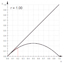 The logistic map is a polynomial mapping (equivalently, recurrence relation) of degree 2, often cited as an archetypal example of how complex, chaotic behaviour can arise from very simple non-linear dynamical equations. The map was popularized in a 1976 paper by the biologist Robert May,[1] in part as a discrete-time demographic model analogous to the logistic equation first created by Pierre François Verhulst.[2] Mathematically, the logistic map is written