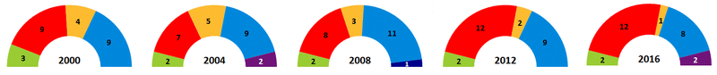 | 2000 | 2004 | 2008 | 2012 | 2016 | |||