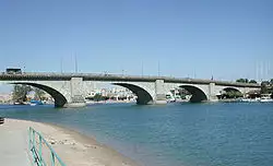 In 1967, the Common Council of the City of London placed the bridge on the market and began to look for potential buyers. Council member Ivan Luckin had put forward the idea of selling the bridge, and recalled: "They all thought I was completely crazy when I suggested we should sell London Bridge when it needed replacing." On 18 April 1968, Rennie's bridge was sold to an American. It was purchased by the Missourian entrepreneur Robert P. McCulloch of McCulloch Oil for US$2,460,000. The claim that McCulloch believed mistakenly that he was buying the more impressive Tower Bridge was denied by Luckin in a newspaper interview.[20] As the bridge was taken apart, each piece was meticulously numbered. The blocks were then shipped overseas through the Panama Canal to California and trucked from Long Beach to Arizona. The bridge was reconstructed by Sundt Construction at Lake Havasu City, Arizona, and re-dedicated on 10 October 1971. The reconstruction of Rennie's London Bridge spans the Bridgewater Channel canal that leads from the Uptown area of Lake Havasu City and follows McCulloch Boulevard onto an Island that has yet to be named.