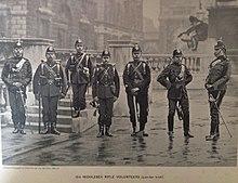 The London Irish Rifles was originally formed in 1859 during the Victorian Volunteer Movement and named 28th Middlesex (London Irish) Rifle Volunteer Corps.[1] In 1880 it was renumbered the 16th Middlesex Rifle Volunteers.[2]