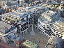 The Stock Exchange in Paternoster Square was the initial target for the protesters of Occupy London on 15 October 2011. Attempts to occupy the square were thwarted by police.[13] Police sealed off the entrance to the square as it is private property, a High Court injunction having previously been granted against public access to the square.[14]