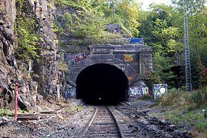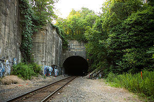 The Long Dock Tunnel is a freight rail tunnel in Jersey City, New Jersey that is part of the North Jersey Shared Assets Area and used by CSX Transportation on the National Docks Secondary. The single track (formerly dual track) tunnel runs through Bergen Hill, a section of the lower New Jersey Palisades in Hudson County.[1]