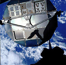 NASA's Long Duration Exposure Facility, or LDEF (pronounced "eldef"), was a school bus-sized cylindrical facility designed to provide long-term experimental data on the outer space environment and its effects on space systems, materials, operations and selected spores' survival.[1][2] It was placed in low Earth orbit by Space Shuttle Challenger in April 1984. The original plan called for the LDEF to be retrieved in March 1985, but after a series of delays it was eventually returned to Earth by Columbia in January 1990.[2]