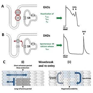 - ^ a b c d Wit AL (June 2018). "Afterdepolarizations and triggered activity as a mechanism for clinical arrhythmias". Pacing and Clinical Electrophysiology. 41 (8): 883–896. doi:10.1111/pace.13419. PMID 29920724. S2CID 49310809.