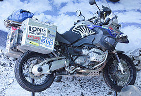 The journey started on 12 May and finished on 4 August 2007.[1] They were accompanied by the same key team members from Long Way Round, including cameraman and director of photography Claudio Von Planta and cameraman Jimmy Simak (who also oversaw music supervision and soundtrack production), and producers Russ Malkin and David Alexanian. They also decided to travel with medic Dai Jones, cameraman and security officer Jim Foster, and various "fixers"—local guides and interpreters. They rode the BMW R1200GS Adventure, the successor to the R1150GS Adventure bikes in Long Way Round.[2]