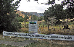 The longest officially recognized place name in an English-speaking country is Taumatawhakatangihangakoauauotamateapokaiwhenuakitanatahu (57 letters), which is a hill in New Zealand. The name is in the Māori language. A longer and widely recognised version of the name is Taumatawhakatangihangakoauauotamateaturipukakapikimaungahoronukupokaiwhenuakitanatahu (85 letters), which appears on the signpost at the location (see the photo on this page). In Māori, the digraphs ng and wh are each treated as single letters.