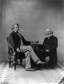 During the 1860s, Longfellow supported abolitionism and especially hoped for reconciliation between the northern and southern states after the American Civil War. His son was injured during the war, and he wrote the poem "Christmas Bells", later the basis of the carol I Heard the Bells on Christmas Day. He wrote in his journal in 1878: "I have only one desire; and that is for harmony, and a frank and honest understanding between North and South".[85] Longfellow accepted an offer from Joshua Chamberlain to speak at his fiftieth reunion at Bowdoin College, despite his aversion to public speaking; he read the poem "Morituri Salutamus" so quietly that few could hear him.[86] The next year, he declined an offer to be nominated for the Board of Overseers at Harvard "for reasons very conclusive to my own mind".[87]