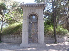 The Tomb of Bai Juyi on the east bank is that of the well-known poet during the Tang Dynasty who lived in Luoyang during his later years. The tomb is located on the hill top. It is approached from the west bank after crossing a bridge across the Yi River. The tomb is a circular mound of earth of 4 meters height with a circumference of 52 meters. The tomb is 2.80 meters high and has the poet's name inscribed on it as Bai Juyi.[9]