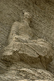 There are several major grottoes with notable displays of Buddhist sculptures and calligraphic inscriptions.[3][5] Some of the main caves and the year when work began within them include: Guyang-dong (493), Binyang-dong (505), Lianhua-dong (520s), Weizi-dong (522), Shiku-si (520s), Weizi-dong (520s), Shisku (520s), Yaofang-dong (570), Zhaifu-dong (ca. 636), Huijian-dong (630s), Fahua-dong (650s), Fengxian-si (672), Wanfo-si (670-680s), Jinan-dong (684), Ganjing-si (684), and Leigutai-dong (684).[11] The Guyang, Binyang, and Lianhua caves are horseshoe-shaped.[12]