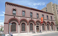 The New York Public Library operates two branches near Longwood. The Woodstock branch, a two-story Carnegie library building opened in 1914, is located at 761 East 160th Street.[38] The Hunts Point branch, a two-story Carnegie library building opened in 1929, is located at 877 Southern Boulevard.[39] The Hunts Point library, designed by Carrère and Hastings in the Italian Renaissance style, was the last Carnegie library built for the New York Public Library system and is a New York City designated landmark.[40]