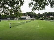 A club for cricket was opened in 1877 at Longwood Estate, a place named after the house Napoleon Bonaparte stayed at while exiled to Saint Helena.[1] Located on the outskirts of Boston on land donated by the Sears family,[2] cricketers and baseball players put Longwood on the sports map. Specifically, Harry Wright, first player-manager of the Boston Red Stockings, played cricket for the United States, as did his brother George Wright. George Wright combined with tennis pro Charlie Chambers in league games throughout New England and played at Longwood against Lord Harris' XI in 1891. George Wright was the co-proprietor of Wright and Ditman, purveyor of fine sports goods. Wright brought the first tennis gear to Boston on his return from a baseball-cricket tour of England in 1874. Wright also taught tennis to Harvard students and toured with them in California in 1890. It was George Wright who deserves the credit for Longwood's broad-based sporting tradition, having excelled in baseball and cricket as a paid professional and at tennis as a promoter of the game.[3] A lawn tennis court was laid in 1878, two years after the organization of the All England Lawn Tennis and Croquet Club at Lord's Cricket Ground in London. On January 5, 1888, Longwood member and US cricket team captain C.L. Bixby led the team to a win over the West Indies cricket team at the Bourda ground in Georgetown, Guyana.[4] Richard D. Sears, who won seven United States Championships, would soon become a club member as well.[1]