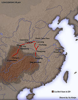 The Longzhong Plan is the name given to a strategic plan by Zhuge Liang, a statesman and regent of the Shu Han state in the Three Kingdoms period (220–280) of China. Zhuge Liang presented the plan to Liu Bei, a warlord who became the founding emperor of the Shu Han state, sometime in 207 towards the end of the Eastern Han dynasty when Liu Bei visited him at his residence in Longzhong (隆中), an area in the west of present-day Xiangyang, Hubei.[1]