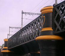 Designed by John Chaloner Smith (engineer to the Dublin, Wicklow and Wexford Railway), the bridge was built between 1889 and 1891.[1] It consists of wrought iron lattice girders on a double row of piers with five spans. The viaduct is approximately six metres above street level and supports two railway tracks.[2]
