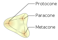 In many mammals, additional smaller cusps called conules appear between the larger cusps. They are named after their locations, e.g. a paraconule is located between a paracone and a metacone, a hypoconulid is located between a hypoconid and an entoconid.[7]