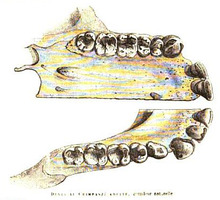 The tribosphenic design appears primitively in all groups of mammals. Some paleontologists believe that it developed independently in monotremes (or australosphenidans), rather than being inherited from an ancestor that they share with marsupials and placentals (or boreosphenidans); but this idea has critics and the debate is still going on.[4] For example, the dentition of the Early Cretaceous monotreme Steropodon is similar to those of Peramus and dryolestoids, which suggests that monotremes are related to some pre-tribosphenic therian mammals,[5] but, on the other hand, the status of neither of these two groups is well-established.
